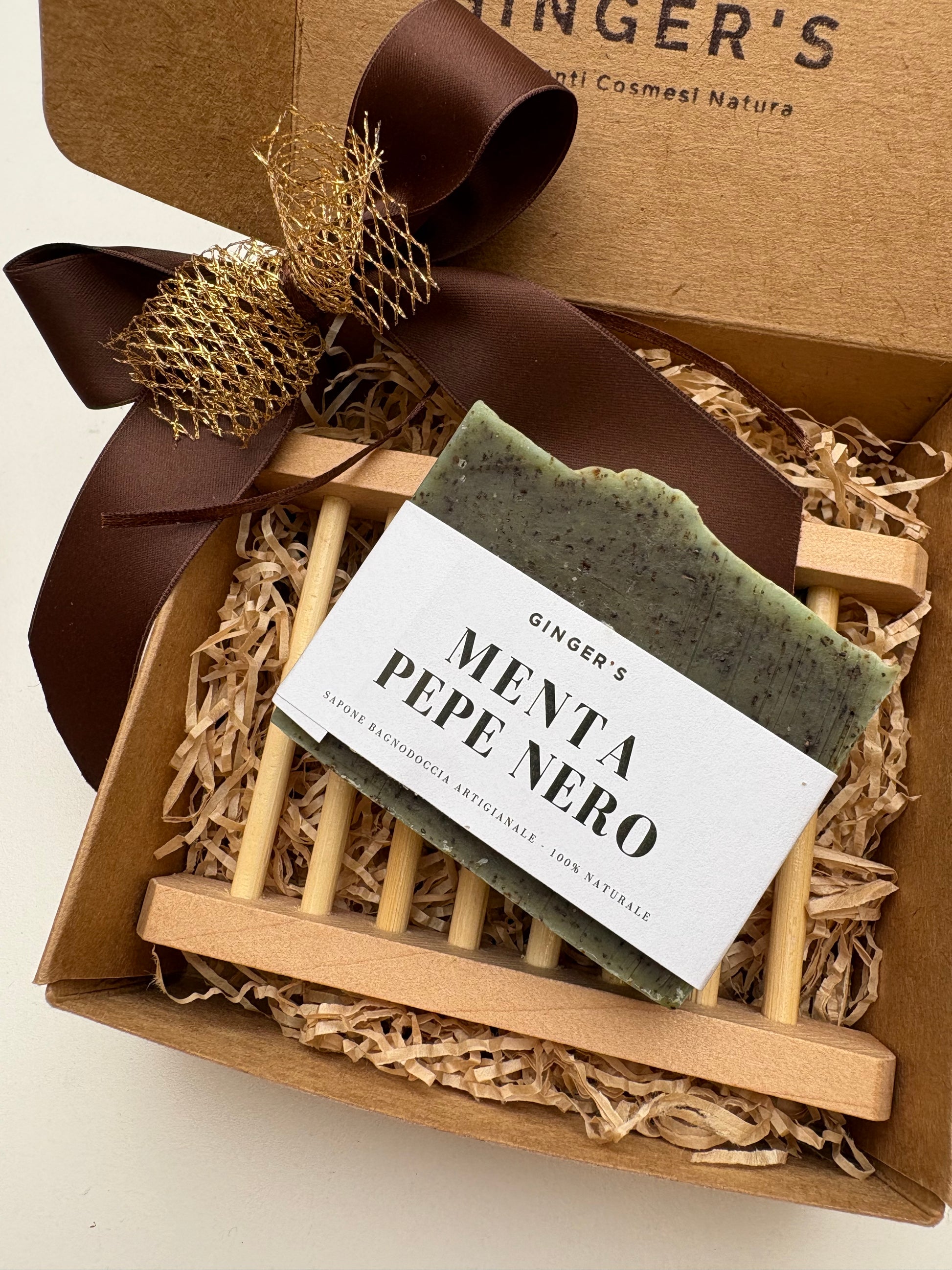 * Saponi: Caffè scrub, Sale di Cervia, Avena scrub, Eucalipto, Black soap, Detox, Arancia speziata, Vaniglia Nera, Lavanda o Sensitive.